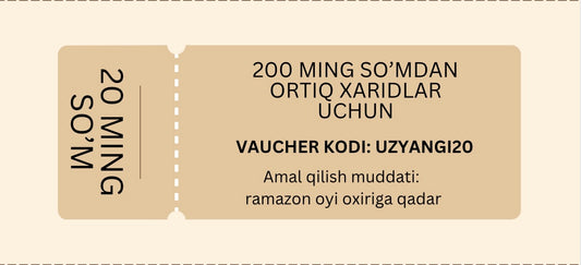 sotuvda mavjud emas1. 20 ming so'mlik vaucher
