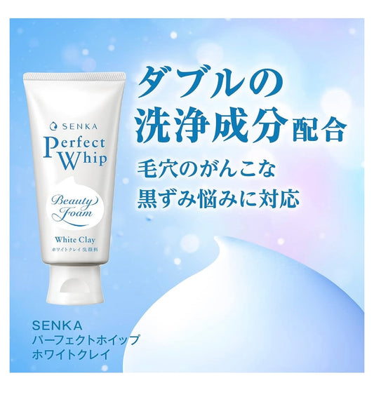 120 gr, SENKA Perfect Whip BT21, White clay, Pores, Square Plug, Blackhead, Yuz yuvish uchun penka, Namlantiruvchi, Poralar va qora nuqtalar parvarishi